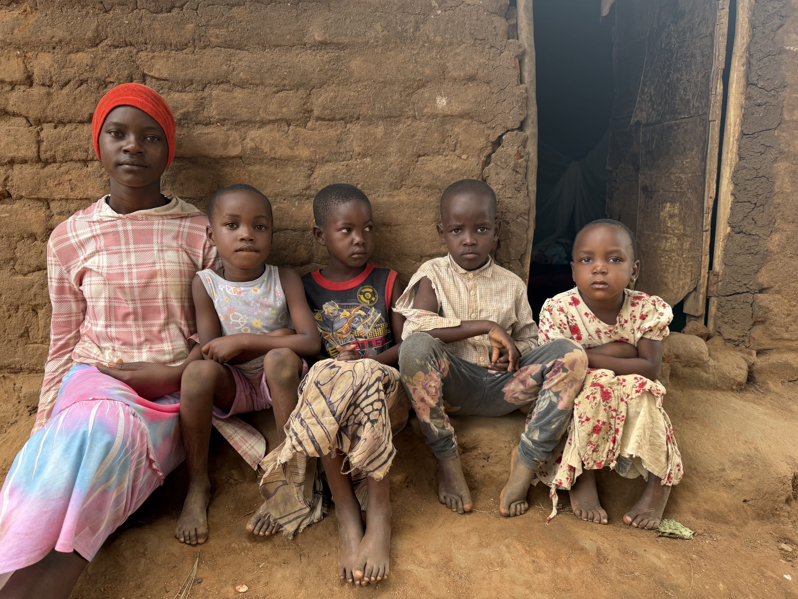 Sunt 5 copii, crescuți doar de mama lor, alături de o bebelușă mică. Trăiesc într-o cocioabă din lut, cu pământ pe jos și pereți goi. Dorm pe jos, pe pământ rece. Au o singură saltea de o persoană, iar în rest dorm pe rogojini. În casă se află doar câteva farfurii și o plasă menită să îi protejeze de țânțarii purtători de malarie.